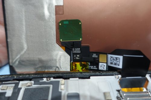 購入したスクリーンには指紋センサーがついてませんので、元スクリーンから移植。