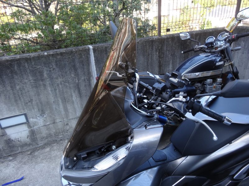 駅までの15分でも結構寒いので、PCXにロングスクリーンを付けることとしました。